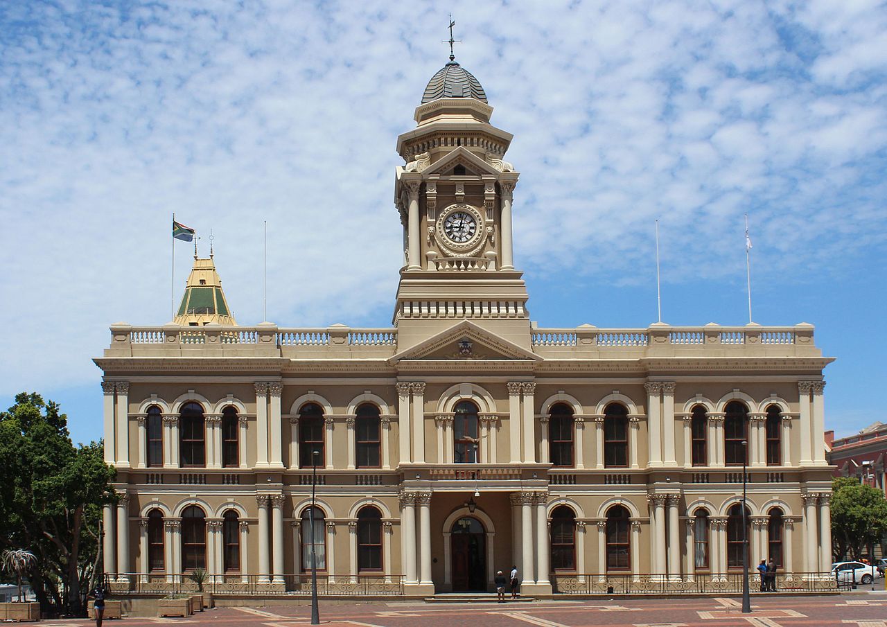Foto: Het stadhuis van Port Elizabeth, de zetel van de gemeente Nelson Mandelabaai (Bron: Martinvl / Wikimedia Commons).